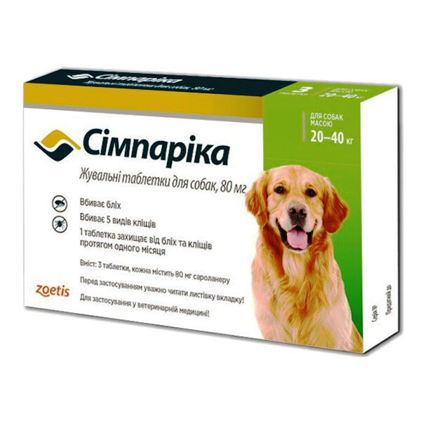 Сімпаріка таблетки від бліх та кліщів для собак вагою 20-40 кг