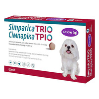 Сімпаріка ТРІО жувальні таблетки від глистів, бліх та кліщів для собак вагою 2,5-5 кг