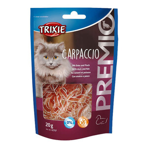 Ласощі для котів Trixie Premio Carpaccio – це справжня м’ясна насолода для вашого пухнастого друга. Поєднання качки та риби робить ці снеки не тільки смачними, але й корисними для здоров’я вашого улюбленця.